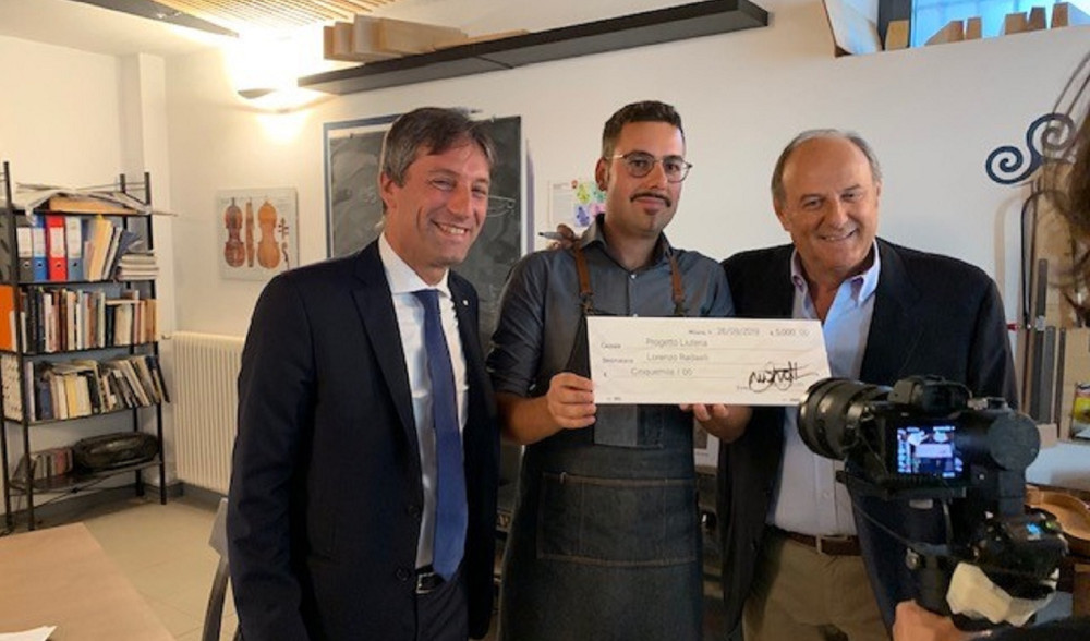 In questa veste, Scotti ha voluto incontrare a sorpresa Lorenzo nella sua bottega e gli ha consegnato un contributo personale di 5 mila euro, a supporto del suo desiderio di insegnare e tramandare questa arte anche oltre confine, aprendo gli orizzonti della sua piccola impresa artigiana ai mercati internazionali.