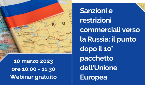Sanzioni e restrizioni commerciali verso la Russia: il punto dopo il 10° pacchetto dell’Unione Europea, Webinar gratuito 10 marzo 2023 ore 10.00